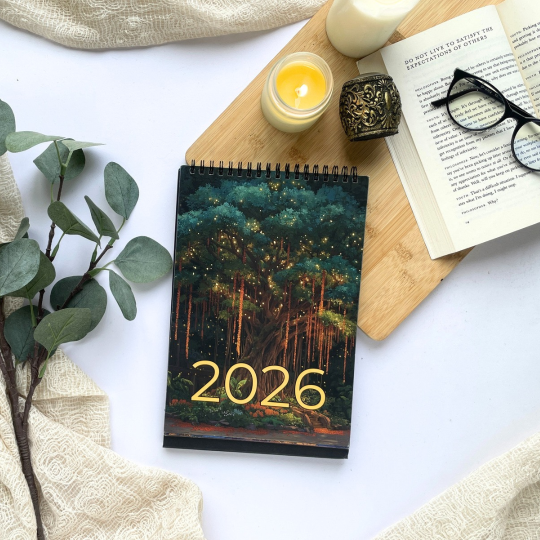 For 2026, the theme is the Tree of Life, rooted like a banyan, glowing like fireflies, expansive like branches reaching toward the light. This box is built to help you grow, reflect, and find sparks of meaning in your everyday in-betweens.